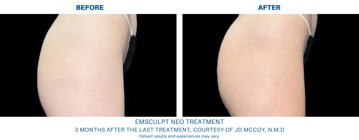 Many Sculp’d patients notice improvement after a single Emsculpt NEO session. But we recommend at least four sessions for the best body sculpting results. Each treatment plan varies, but we typically space these sessions 5-10 days apart.