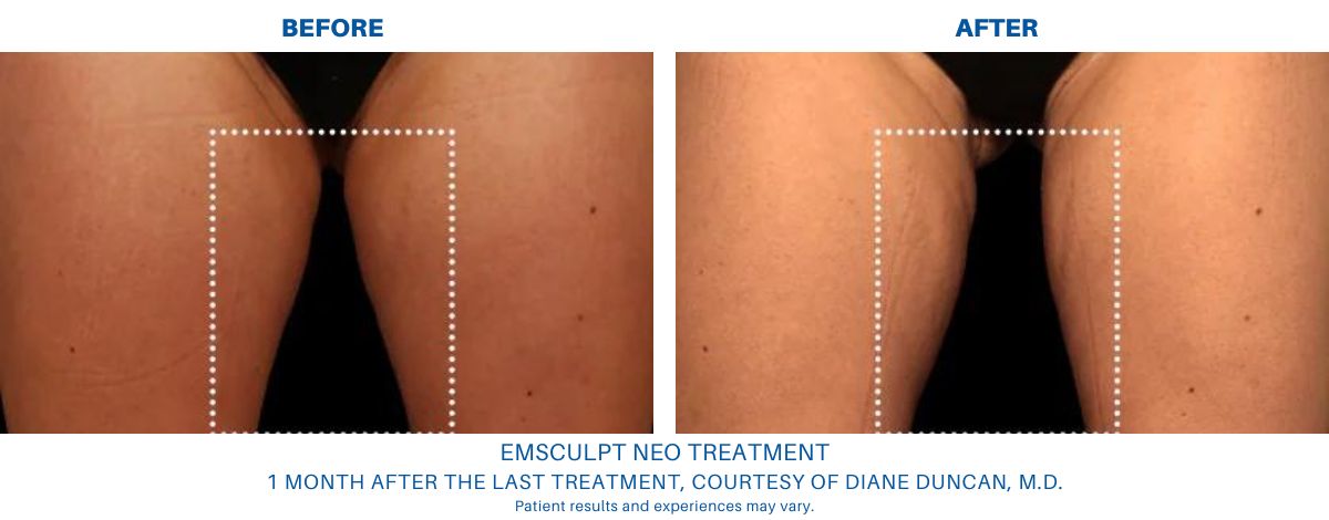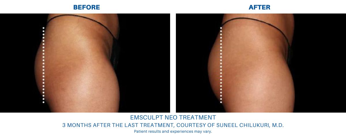 Emsculpt NEO may result in some skin tightening in the treated area(s). However, Emsculpt NEO is not a skin-tightening treatment.