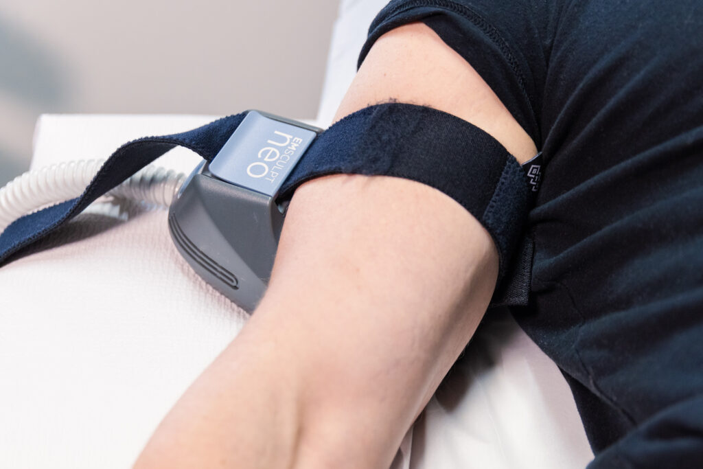 HIFEM energy triggers muscle growth by delivering powerful contractions to the muscle tissues in the body. These intense contractions are much stronger than the ones you get from a hard workout at the gym. While the contractions may feel intense, they should not be unbearable or painful. At most, you may feel the treatment area heating up during the procedure.